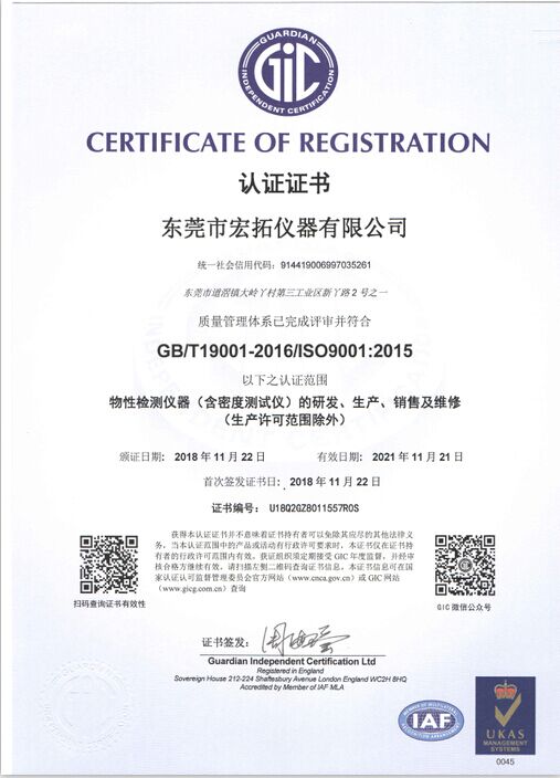 宏拓儀器通過ISO9001:2015質(zhì)量體系管理認(rèn)證,通過國家計量測試中心全面質(zhì)量與性能檢測,獲得國家計量器具型式批準(zhǔn)CPA證書,參與起草制定: 【GB/T 1040.1-2025塑料 拉伸性能的測定】、【GB/T 1634.1-2025塑料 負(fù)荷變形溫度的測定】、【GB/T 44559.1-2024塑料 硬質(zhì)塑料沖孔性能的測定】 、【GBT 43139-2023鑄造鋁合金液減壓凝固試樣密度檢測】......等標(biāo)準(zhǔn)。